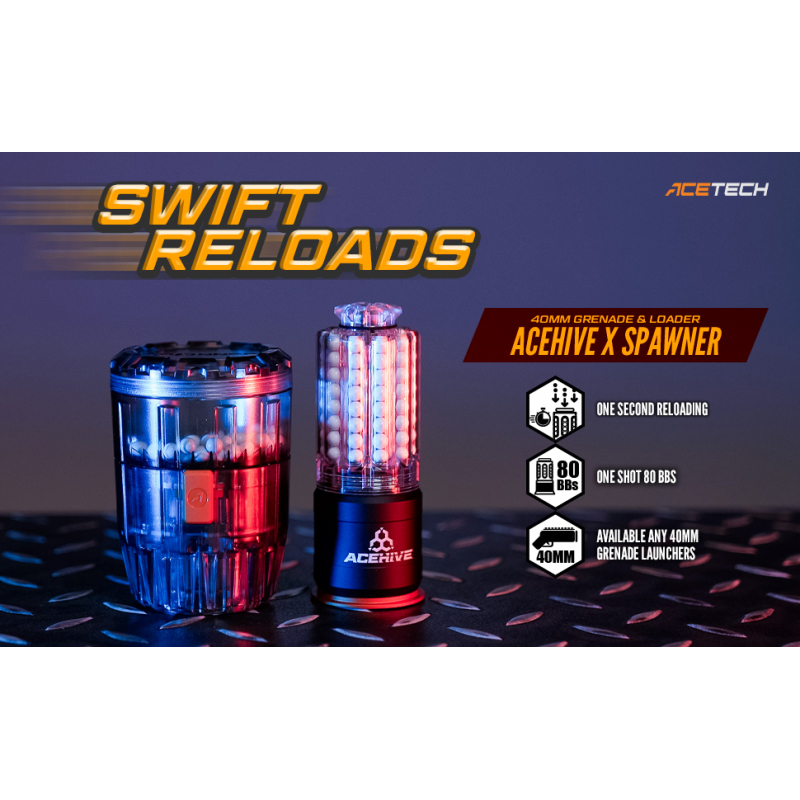Už vás nebaví zdlouhavé nabíjení klasických plynových granátů? Chcete mít po ruce malý a spolehlivý granát, který vystřelí všechny BBs najednou a s pořádným dostřelem? Chcete granát, který čistí místnost lépe než Mr. Propper? Potom je AceTech AceHive jediná možná volba. Granát přináší revoluci v plnění kuličkami, a to díky speciální plničce Spawner (součást balení). Díky ní je granát naládován kuličkami během jediné vteřiny. Transparentní tělo umožňuje okamžitou kontrolu, zda je granát plný, a díky kompatibilitě s většinou airsoftových 40mm granátometů ho využijete na každé zbrani (včetně pistolí). Granát je určený pro plnění běžným Green Gas plynem a má kapacitu 80 BBs, která zajistí ideální palebnou sílu v uzavřeném i otevřeném prostoru. Toto balení je takový granátový STARTER PACK, protože v sadě obdržíte rovnou 2 granáty i plničku SPAWNER, a to se vyplatí (To ano, Horste!).