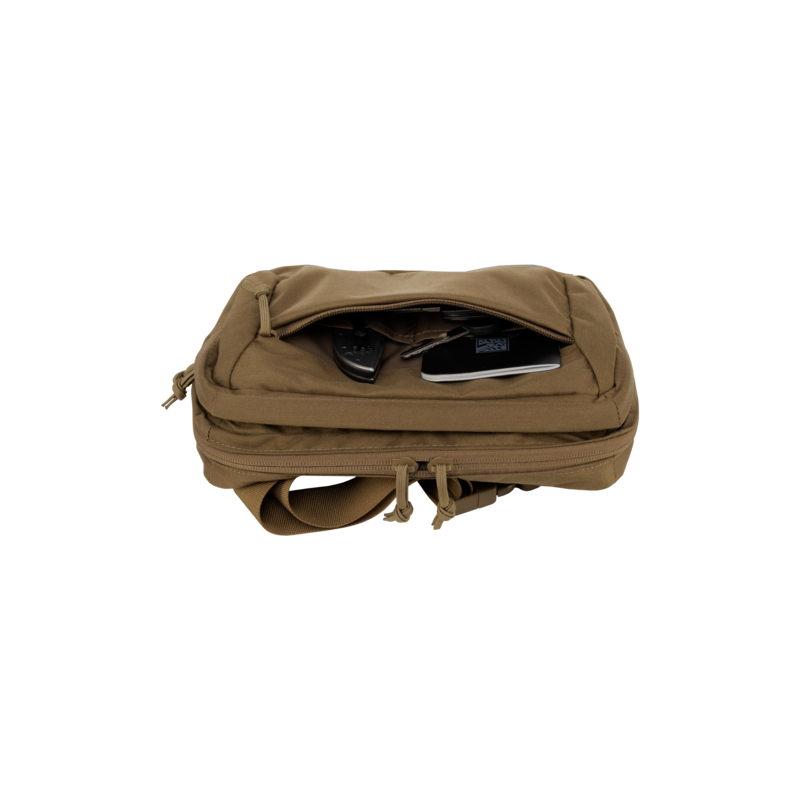 Přední kapsička, která je uzavíratelná jednocestným zipem, je ideální pro uložení menších předmětů jako nůž, multitool nebo zápisník. Interiér této kapsy obsahuje několik menších přihrádek.