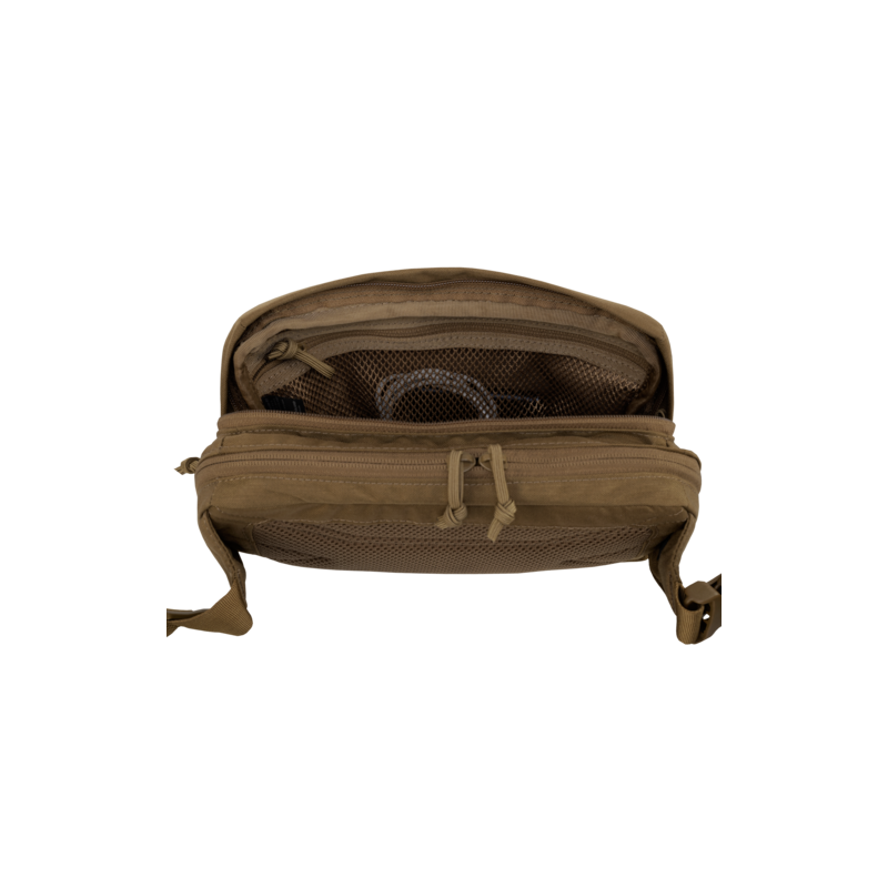 Zadní oddělení ledvinky je navrženo tak, aby umožňovalo rychlé rozevření díky integrovaným poutkům a je podšité měkkým flaušem, což umožňuje připojení kompatibilních INSERTŮ na suchý zip (naleznete ve vhodném příslušenství), což je ideální pro fixaci pistole nebo organizérů.