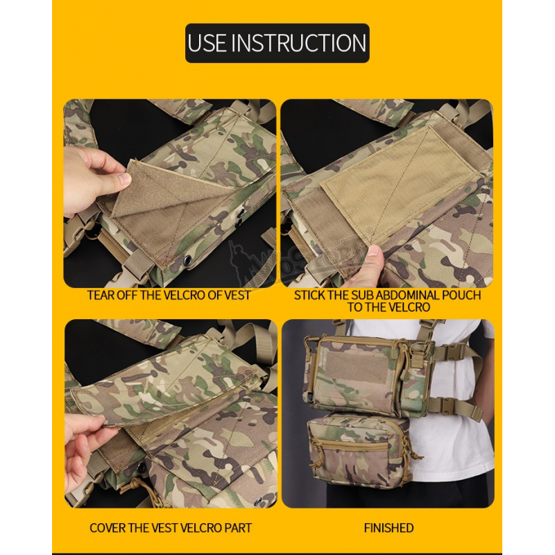 Lze ji připnout na přední platformu se suchým zipem na nosiči plátů nebo chest-rigu.
