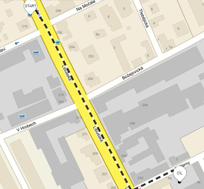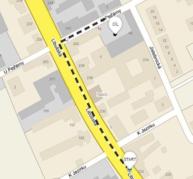 Trasa z Jižní spojky vám zabere necelých 7 minut. Odbočíte ze spojky na ulici Vídeňská, pak stále rovně. Na druhých světlech (po levé ruce budete mít krčskou Thomayerovu nemocnici), odbočíte vpravo na ulici Zálesí, pojedete rovně a na dalších světlech se dáte vlevo na ulici Libušská. Pak rovně rovně rovně a odbočka vpravo do ulice U Pejřárny. Náš obchod je na adrese: