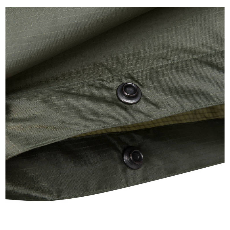 Toto nepromokavé pončo je vyrobené z odolného rip-stop polyesteru, což zajišťuje jeho dlouhou životnost i v náročných podmínkách. Díky své nízké hmotnosti a malým rozměrům po složení je ideální pro všechny, kdo hledají praktickou ochranu před deštěm. Druky umožňují přizpůsobení ponča, ať už vytvořením rukávů nebo spojením dvou ponč dohromady jako improvizovanou celtu.