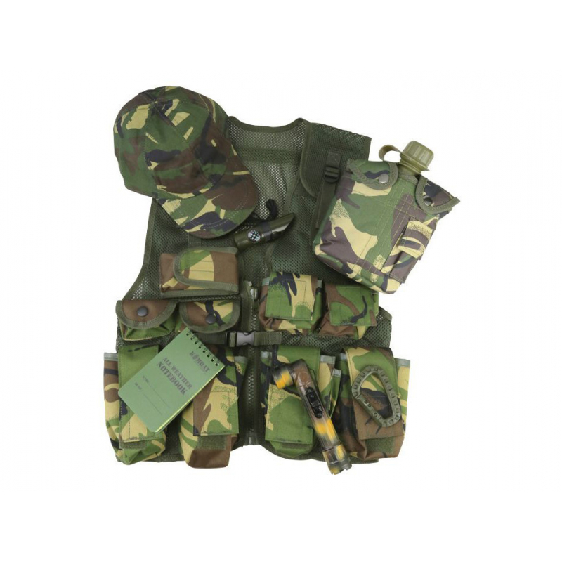 Dětská dárková sada, která obsahuje vše, co by malý voják nebo vojanda či průzkumník, objevitel nebo Indiana Jones mohli potřebovat. V balení najdete taktickou vestu, čepici, svítilnu, voděodolný blok, píšťalku 7v1, láhev na vodu a taktickou karabinu.
