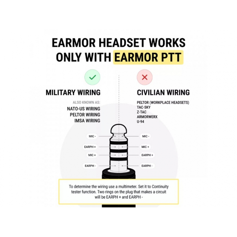 EARMOR M51 PTT spínač - klíčový prvek pro aktivní komunikaci nejen na bojišti. Konektor Kenwood 2-pin pro radiostanice Baofeng, Wouxun a další. Přípojka MIL-STD 4-pin (Nexus TP-120 / 7.0 NATO) pro headsety Earmor. Lehký a odolný polymer zaručuje spolehlivé používání v náročných podmínkách. Snadné ovládání i v rukavicích. Možnost upevnění na...