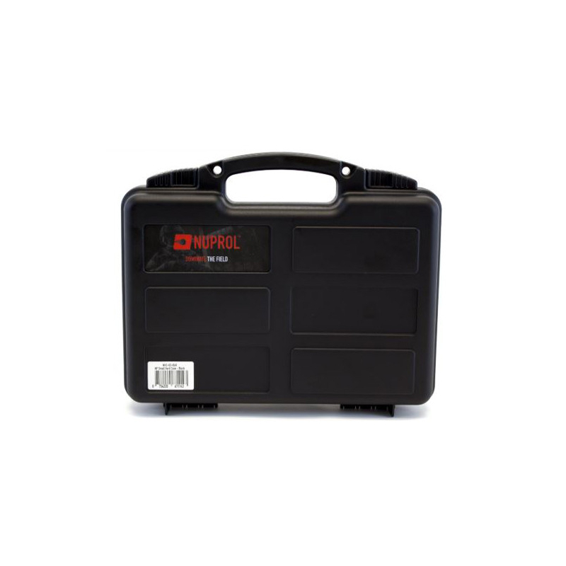 Robustní plastový kufr Hard Case od NUPROL je ideální pro bezpečné uložení a přepravu pistolí a menšího vybavení. Kufr je odolný proti prachu a vodě (IP65), tím zajišťuje spolehlivou ochranu v jakýchkoliv podmínkách. Dále je vybaven 2 posuvnými zámky a otvory pro visací zámky pro ještě vyšší bezpečnost. Robustní madlo pro přenášení a pevná konstrukce z plastu odolného proti poškrábání zajišťují dlouhou životnost a jednoduchou manipulaci při přepravě. Díky drážkám na povrchu lze kufry snadno stohovat na sebe, což šetří místo při skladování nebo přepravě celé jednotky v jednom vozidle.