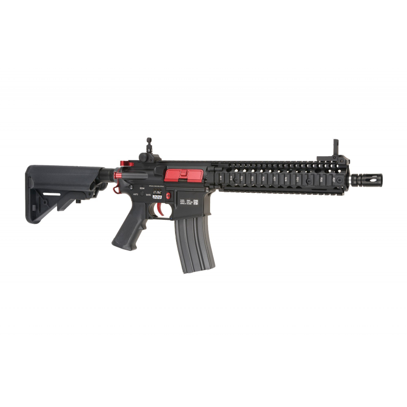 Perfektní airsoftová AR15 (M4), to je AEG replika pušky MK18 řady One od Specna Arms v provedení černá a červená!