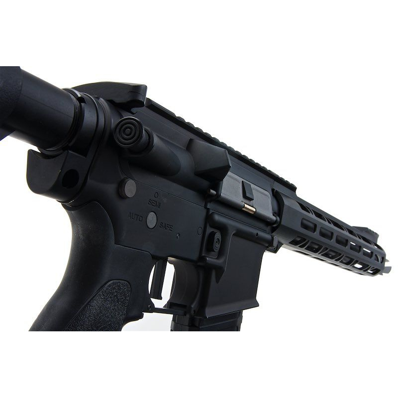 Hledáte spolehlivou a univerzální AEG pušku M4? Chcete špičkově odladěnou zbraň přímo z krabice s upgrade díly pro dlouhou životnost? Toužíte po zbrani, která nabídne vysokou kadenci, přesnost a odolnost zároveň? SSR4 Mk1 Gen2 je nová generace oblíbené platformy AR15 (M4/16) navržená pro hráče všech úrovní. S programovatelnou elektronickou ETU jednotkou, rychlou kadencí 22 BB/s a výkonem okolo 120 m/s se skvěle hodí jak na CQB, tak na venkovní lesní akce. Zesílený mechabox V2 (TM standard) je vybaven prvotřídními upgrade komponenty včetně pístu s plným kovovým ozubením s CNC hlavou pístu, CNC hlavou válce s CNC hliníkovou tryskou. Dále nerezovým válcem, vodičem pružiny z nerezové oceli, CNC koly 16:1 a 8mm kuličkovými ložisky. Celou sestavu pohání zátěžový motor se silnými neodymovými magnety. O přesnost se postará rotační hop-up komora a přesná vnitřní hlaveň s průměrem 6,03 mm. Rychlá výměna pružiny (QSC) umožňuje výměnu pružiny (úpravu výkonu) jednoduše skrze tubus pažby bez nutnosti demontovat mechabox z těla.