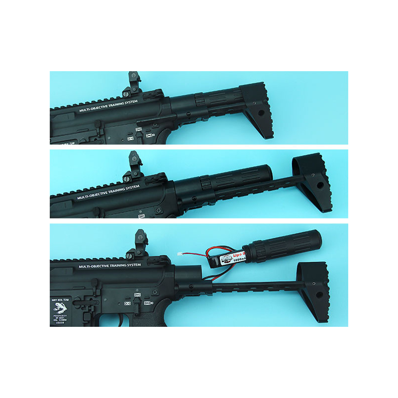 Puška má kovové předpažbí. Pažbu a pažbičku z ABS plastu (ABS je nejčastěji používaný odolný plast, používaný u airsoftovích zbraní a jejich reálných předloh). Těla Jsou vyrobeny ze zinkové slitiny. Na těle pušky najdete vygravírované logo a uvnitř zesílený mechabox V2 s 8 mm ložisky, pružinou SP110 a motorem M120. Balení obsahuje: Ručku. tlačný zásobník na 130bb., odnímatelná zadní mířidla. BATERIE A NABÍJEČ NENÍ SOUČÁSTÍ BALENÍ!