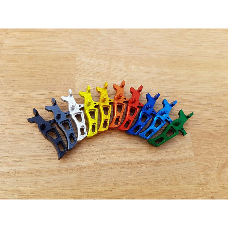 CNC spoušť vyrobená z vysoce pevného hliníku EN AW 2007. Spoušť je určena pro airsoftové zbraně typu M4/M16 a vyznačuje se velmi rychlou odezvou při zmáčknutí spoušťě. Chod spouště je zrychlený o cca 70%. Povrchová úprava eloxováním.