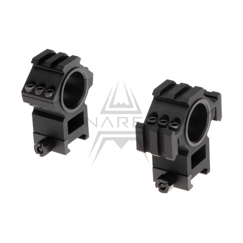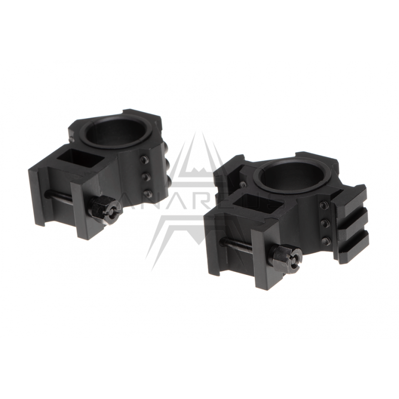 Dva montážní kroužky pro uchycení optiky s průměrem tubusu 25mm nebo 30mm. Díky RIS lištám na kroužcích je můžete osadit vybavením navíc, například uchytit na kroužek kolimátor. Vytvoříte tak hybrid, se kterým svůj cíl zaměříte na dálku i na blízko.