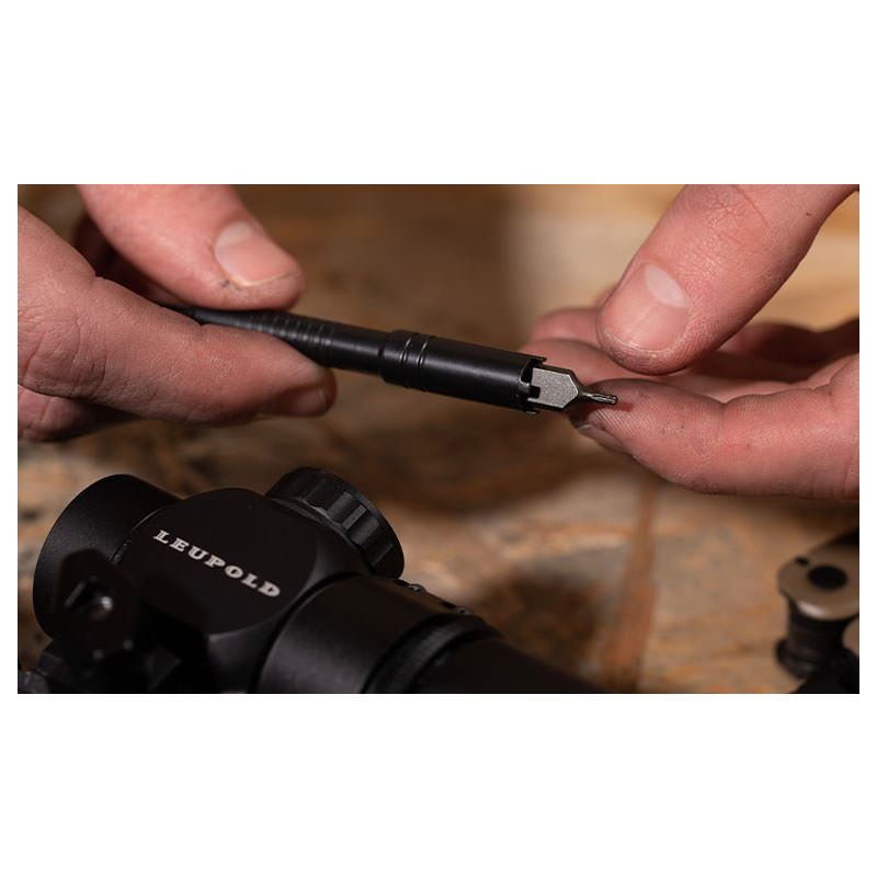 Tento prodlužovací nástavec Leatherman je kompatibilní se standardními ¼ bity nebo Leatherman patentovanými oboustrannými bity a funguje s jakýmkoli multifunkčním nářadím Leatherman s velkým bitovým nástavcem. Kromě samotného uchycení bitů slouží horní část nástavce jako nástroj pro seřízení mušky typu A2.