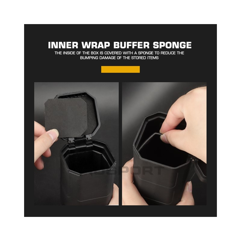 Tento praktický box od WoSporT je ideální pro bezpečné uložení a přepravu drobností, které vyžadují ochranu před poškrábáním nebo poškozením. Uvnitř je měkká pěnová výstelka, která tlumí nárazy a pomáhá udržet obsah v bezpečí. Krabička je odolná proti prachu a menším povětrnostním vlivům, avšak není vodotěsná.