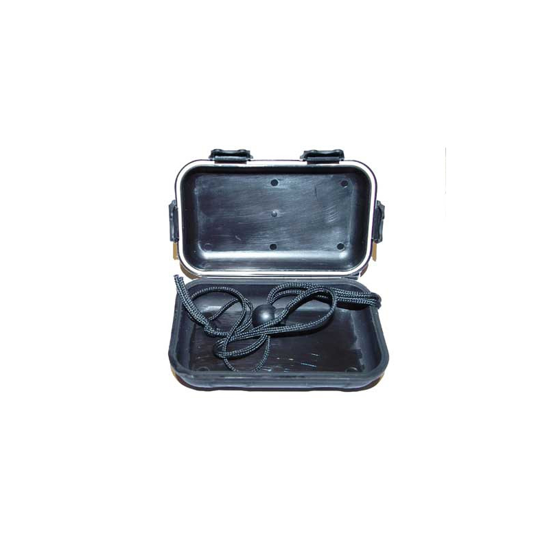 Plastový nárazu a vodě odolný box o rozměrech 13,5x8x3,7cm v černé barvě.