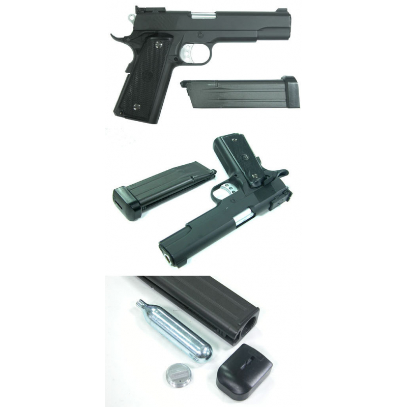 WE GBB CO2 pistole s kovovým závěrem jsou vhodné pro klasické 12g CO2 bombičky, ale pistole lze používat i s klasickými plynovými zásobníky na Green Gas.