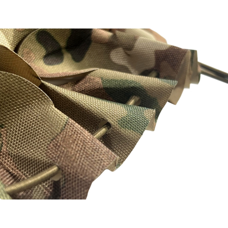 Představujeme náš speciální 3D maskovací potah na helmu ANAREUS, který dostane tvé maskování na zcela novou úroveň. Tento potah je vyroben z pevné tkaniny Cordura s laserem vyřezávanými otvory (laser-cut), které po instalaci vytváří efekt 3D sítě. Otvory umožňují snadné připevnění okolní vegetace, takže si můžeš vytvořit precizní maskování své přilby přímo v terénu.