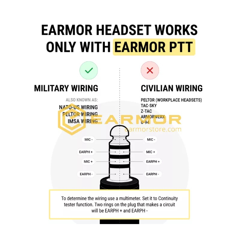 M52 PTT spínač je klíčovým prvkem pro aktivní komunikaci během vojenských operací. Tato verze PTT je navržena pro použití pouze s profesionální vojenskými headsety jako je Peltor nebo Earmor headsety řady MARK3 s konektorem NEXUS TP-120 U-174 Military Connector.