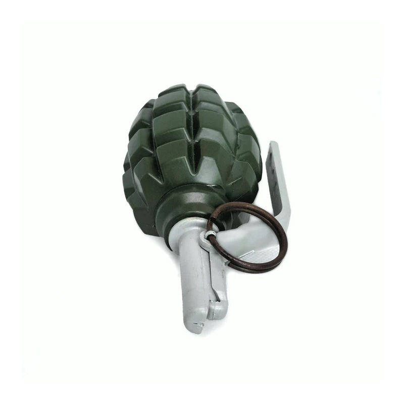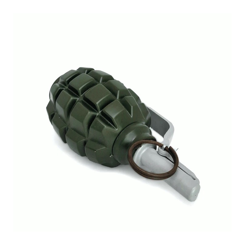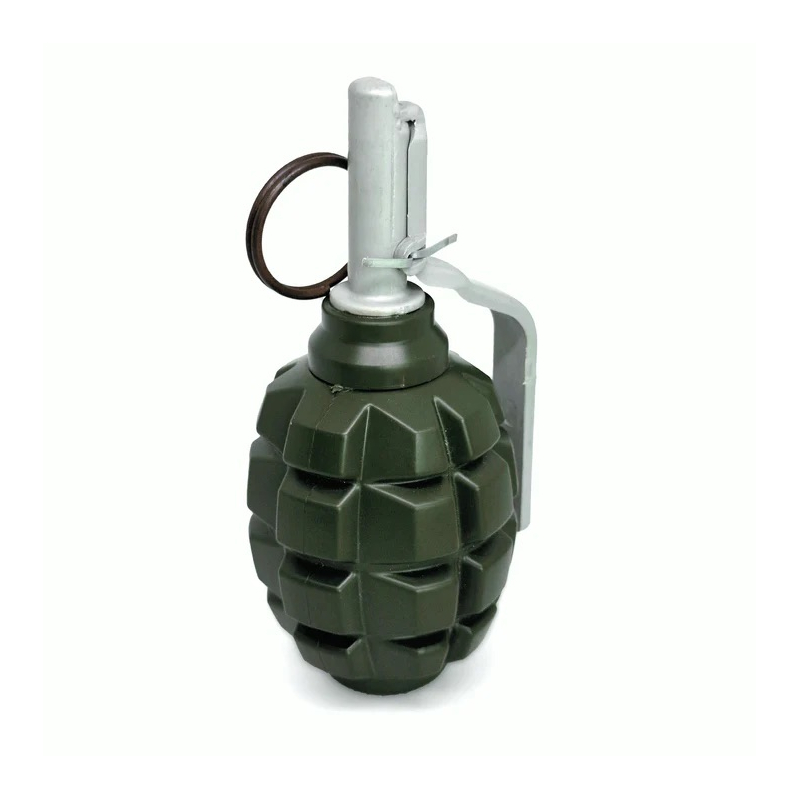Realistický airsoftový granát kopírující sovětský F1 naplněný křídovým prachem, který imituje kouř při výbuchu.