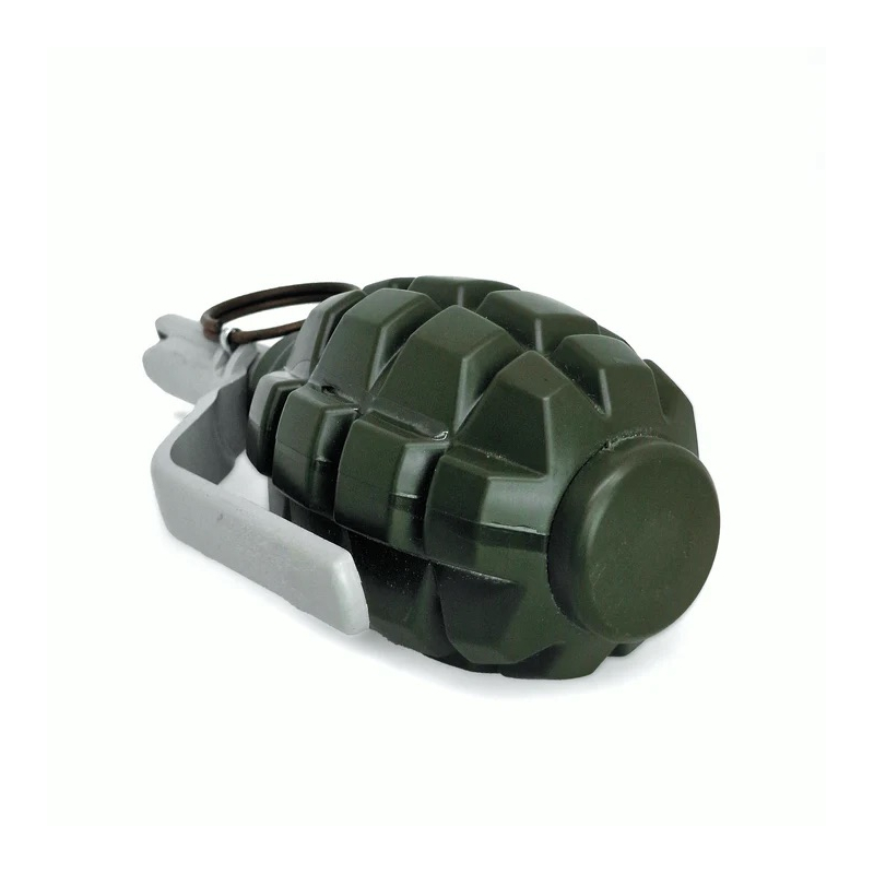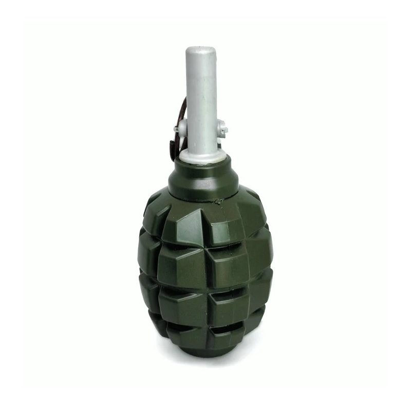 Realistický airsoftový granát kopírující sovětský F1 naplněný křídovým prachem, který imituje kouř při výbuchu.