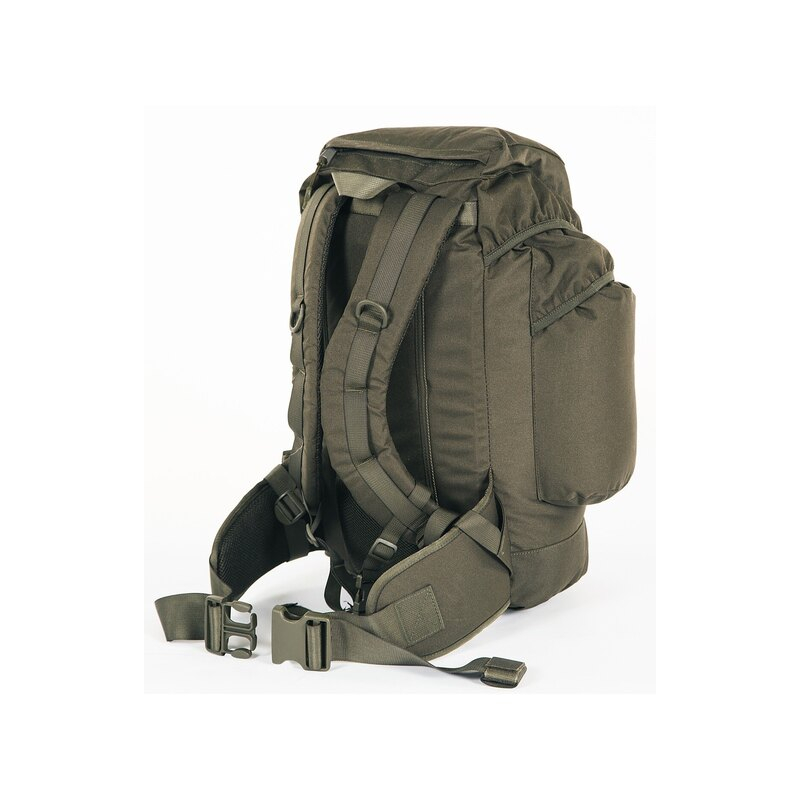 Tento batoh byl navržen tak aby byl lehký, kompaktní a zároveň se do něj vešlo vše co je třeba pro jednodenní výpravu do přírody. Na jeho bocích jsou umístěny dvě velké kapsy s elastickou překryvnou klopou. Do nich můžete dát věci, které chcete mít rychle při ruce. I když do nich uložíte pončo, nebo láhev s pitím, vždy v nich zbude dostatek prostoru na pár drobností. Jejich horní okraj je opatřen regulační šňůrkou s táhlem. Čelo batohu překrývá víko s velcro panelem pro umístění ID označení a prostornou kapsou na zip. Otevřením plastových přezek a odklopením víka se dostanete k hlavnímu prostoru i k úložným kapsám v přední části. Hlavní komora batohu se uzavírá po obvodu stahovací šňůrkou s jezdcem. Čelní síťovaná kapsa na suchý zip je ideálním prostorem pro mapu, nebo lékárničku. Navíc je ještě překrytá bungee šňůrou a v rozích osazena D kroužky pro zavěšení dalšího vybavení. Vnější část dna je pošitá MOLLE vazbou, která nabízí možnost uchycení karimatky, nebo spacáku vně batohu pro případ, že chcete v přírodě nocovat. V tomto prostoru je i menší zipová kapsa s velcro úchytem pro umístění pláštěnky.
