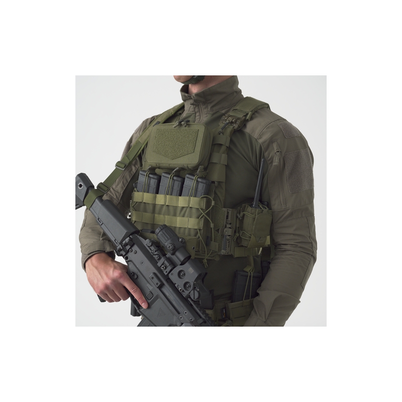 Elastická šňůrka nejen pevně drží zařízení na místě, ale zároveň zajišťuje snadný přístup k ovládacím prvkům vysílačky. MOLLE systém umožňuje snadné připevnění na nosič plátů, batoh nebo jinou výstroj. Sumka je ideální pro ozbrojené složky, které potřebují mít komunikační vybavení neustále po ruce.