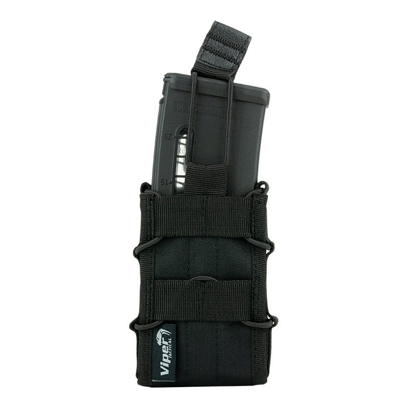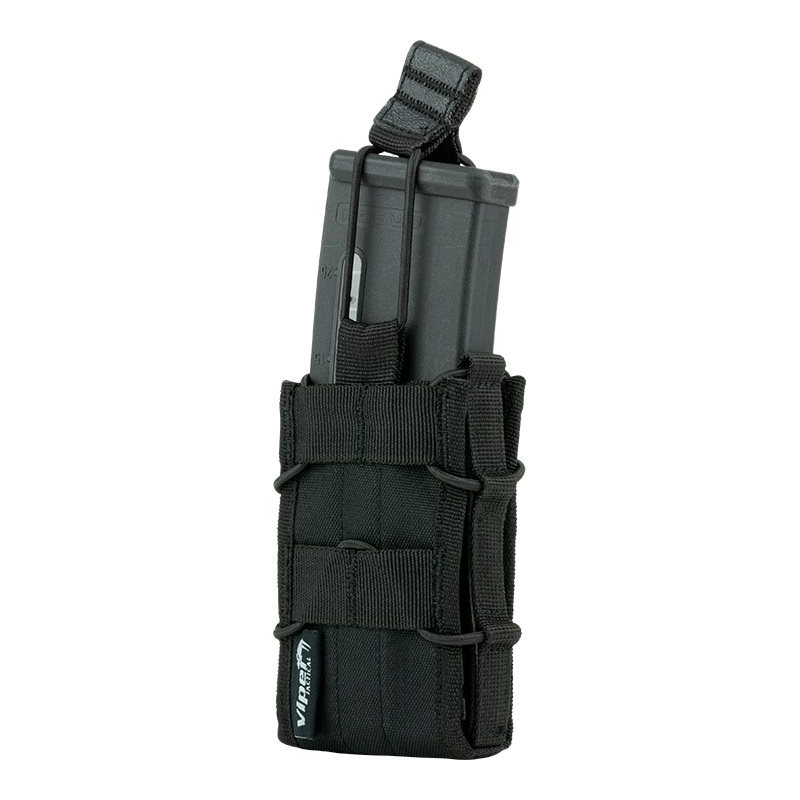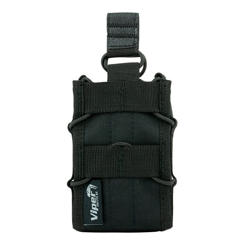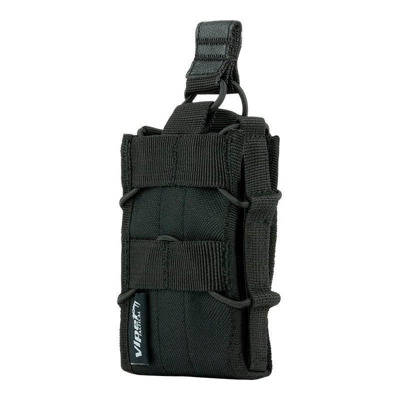 Pouzdro, do kterého díky jeho variabilitě pasují různé druhy zásobníků. MOLLE popruhy, elastické (bungee) popruhy. Materiál 600D Cordura. Rozměry: cca 12 x 8 x 3 cm.