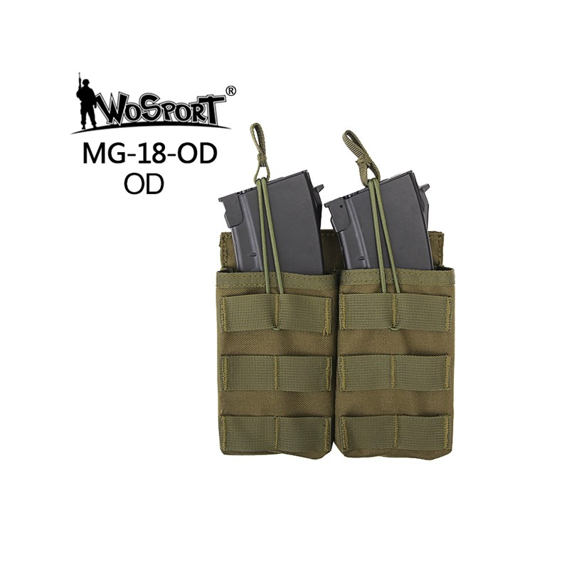 Sumka na dva zásobníky pro G36, pro připojení k MOLLE systému. Pouzdro je nahoře otevřené, zásobník se zajišťuje elastickou nastavitelnou šňůrkou.