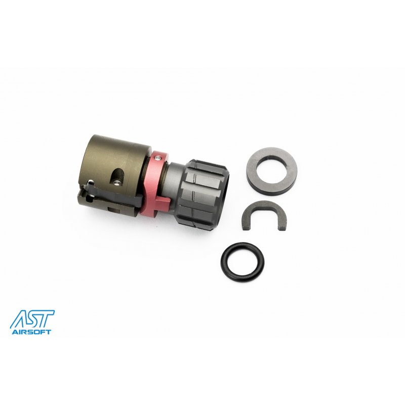 Díky precizní konstrukci z CNC obráběného hliníku poskytuje tato komora vynikající odolnost a dlouhou životnost. Dvojitý nastavovací mechanismus umožňuje nastavit hop-up buď přímo z vnější hlavně přes plynovou trubici, nebo pomocí pevného šroubu na komoře pomocí imbusového klíče M2. Tento systém je podobný tomu, který využívají série WE a VFC GBB.
