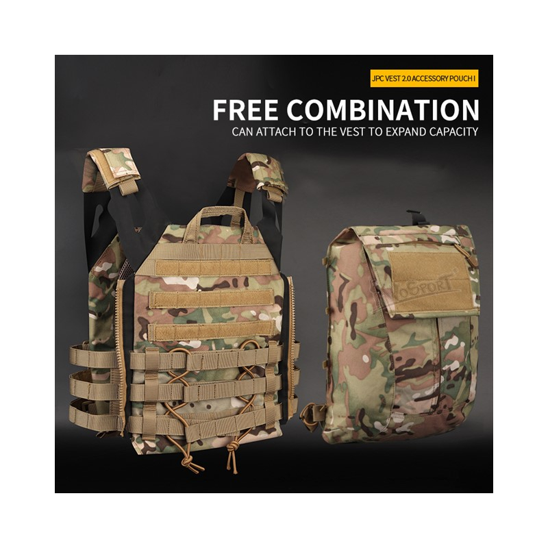 Multifunkční batoh pro vestu typu JPC značky Wosport, který snadno pojme vaše vybavení a budete tak mít při hře vše u sebe. Batoh je vyroben z odolného nylonu 1000D a v jeho vnitřní části najdeme velký úložný prostor, kapsy ze síťoviny a elastické popruhy pro zajištění vašich věcí. Dostupný v několika barevných provedeních.