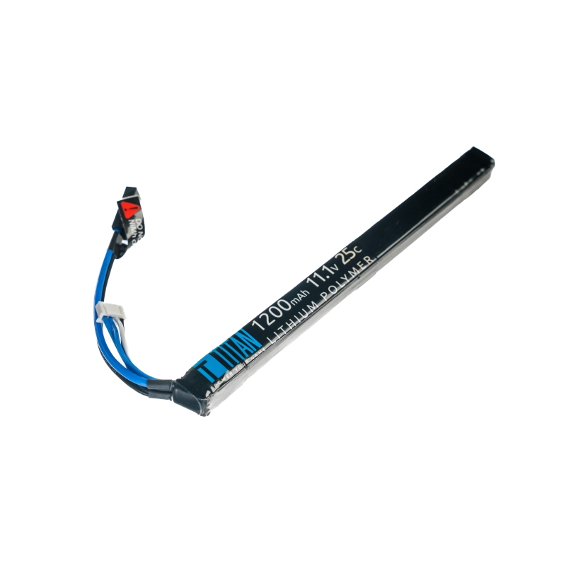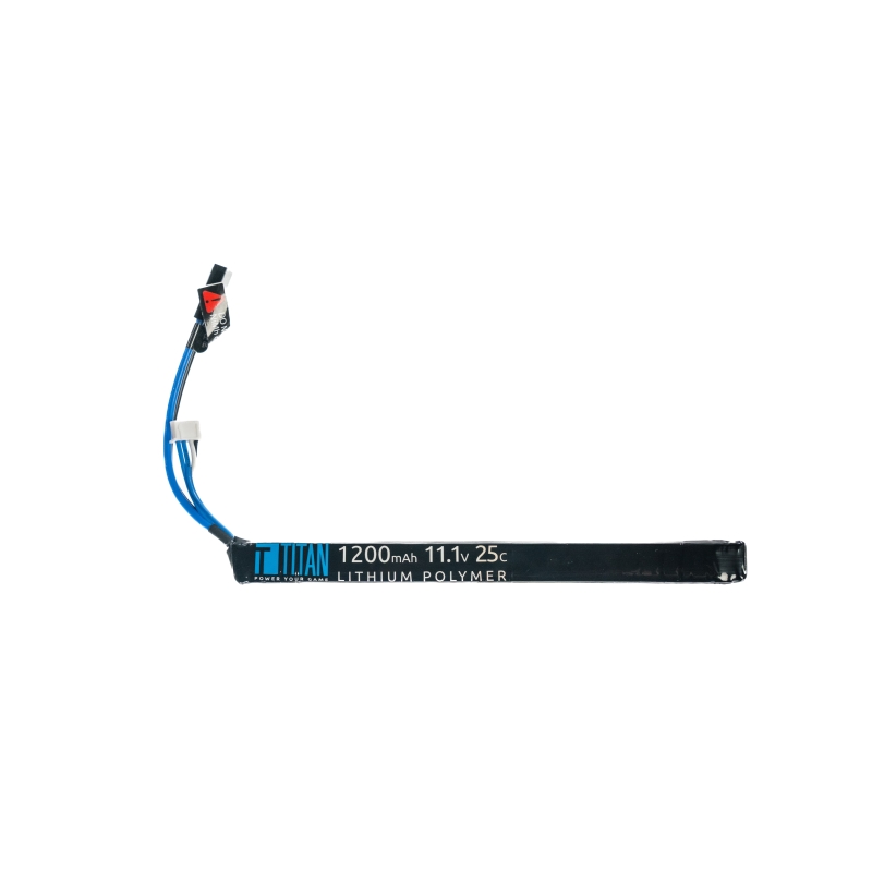 TITAN 11.1V 1200 mAh Li-Po Battery with a discharge rate of 25C in Stick (AK) configuration.