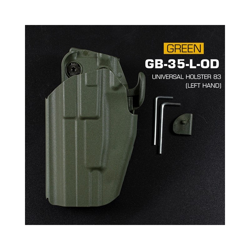 The Universal Belt Holster GB35 is made of durable nylon, providing reliable protection and long-lasting performance. The holster is designed for safety during weapon carrying and quick draw access.