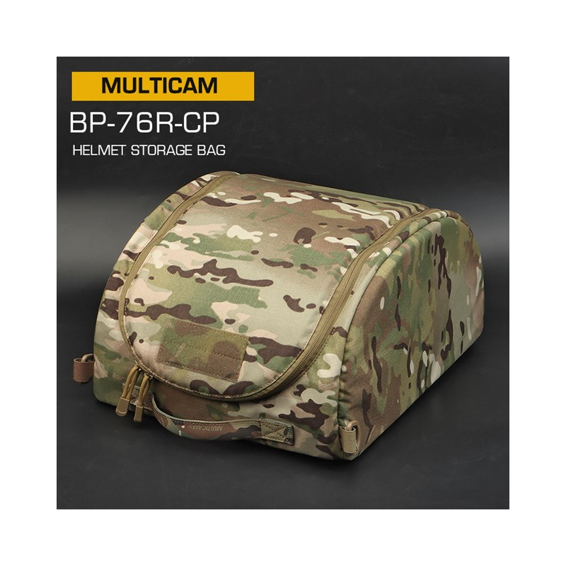 Helmet cover with lots of useful features. The helmet is held in place by a Velcro strap. The closure is secured by high quality and strong zippers. On the top of the cover you will find a Velcro panel for placing the identification patch. The handle makes it easy to carry the whole case.