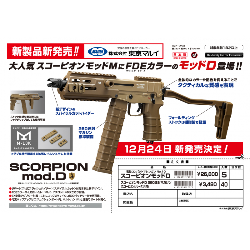 The company Tokyo Marui took this little cute "pistol" Vz.61 Scorpion and gave it a new modern look and style in the form of the Scorpion MOD.D model.
