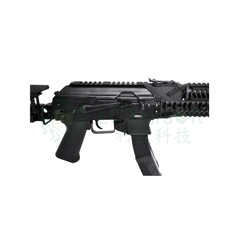 LCTZP1901 is a replica of the well-known Vityaz submachine gun from a Russian workshop in steel design. On the body of the gun, accessories from the "Z" series (a copy of Zenitco under license). This model is fitted with an aluminum handguard with Zenitco embossing. On the forearm we find a 4X RIS bar for attaching tactical accessories. The shutter cover is hinged with a RIS bar. The stock has an adjustable cheek piece in Zinitco copy. The grip is ergonomically made of high-quality polymer.