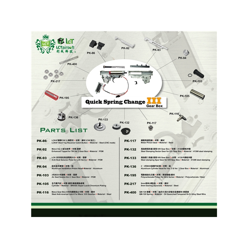 The Taiwanese company LCT produces some of the most realistic replicas and weapons on the market. It focuses on AK, AR, HK platforms. Their bodies are made of steel and copy the production processes of sharp originals. LCT replicas are known for high reliability, long life and attention to detail. The assortment also includes spare parts and a wide range of quality accessories.