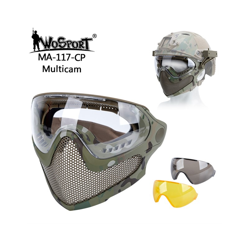 Protective mask with the possibility of attaching to the helmet.