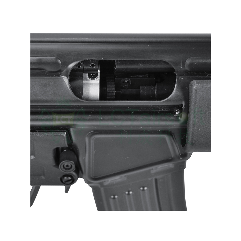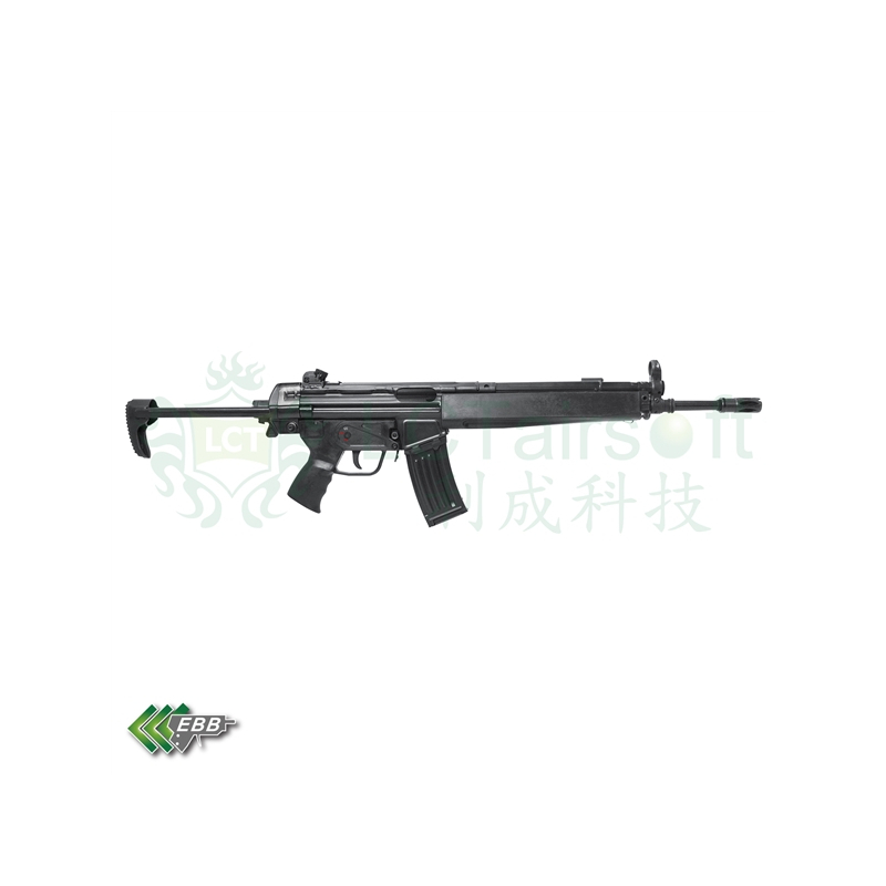 The LCT LK33A3 is a replica of the German H&K33 assault rifle. The gun has a beautiful steel body that is identical to the original model. On the weapon we find polymer accessories identical to the sharp original. The stock is made of polymer, the stock is sliding made of steel. The weapon has an adjustable rear sight according to a sharp pattern. Internal parts at a high level, the possibility to change the stock in a minute thanks to the QSC gearbox and easy removal of the stock with one pin. Electric blowback ensures a nice feeling of shooting, it really kicks. The gun can be fitted with the original stock, which fits without modification.