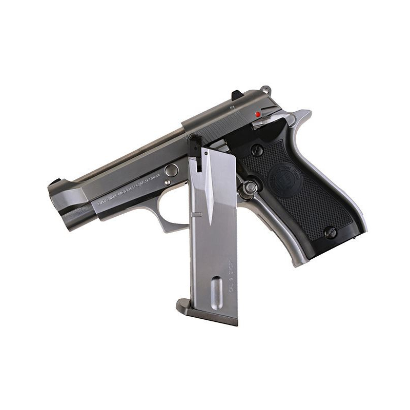 WE GBB Gas Pistol Beretta M84 in silver finish.