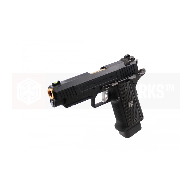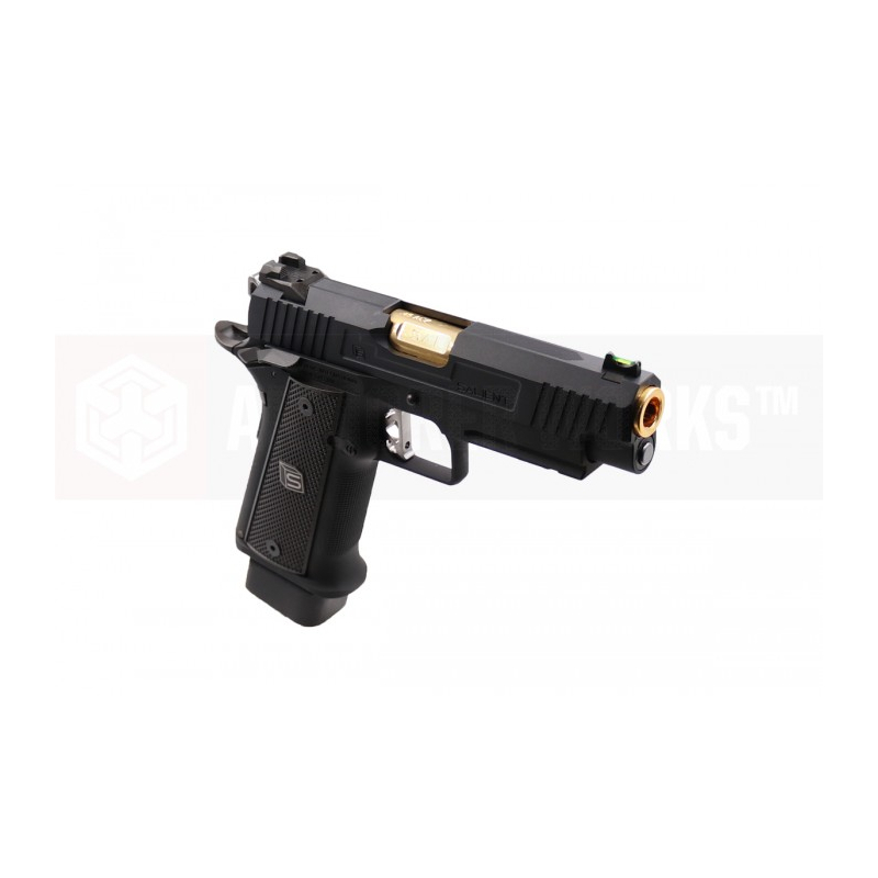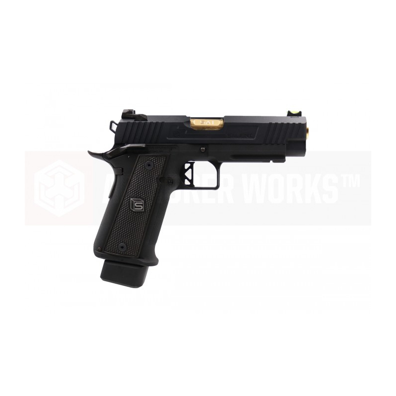 EMG has extended their collaboration with the Salient Arms and is proud to release the Salient Arms x EMG DS 2011 collaboration Airsoft Training pistol. Manufactured with an eye to detail the EMG SAI DS 2011 is CNC machined from aluminum alloy and features all of the trademarks of a Salient Arms pistol, incuding: a titanium nitride style barrel, competition style sights with fiber optic front insert, ambidextrous safety and, of course, stamped Salient Arms International rollmarks. Utilizing the Tokyo Marui Hi-Capa gas system, the Salient Arms / EMG DS pistol can be upgraded from a wide pool of available parts and components, ensuring easy repair and maintenance and years of reliable service.