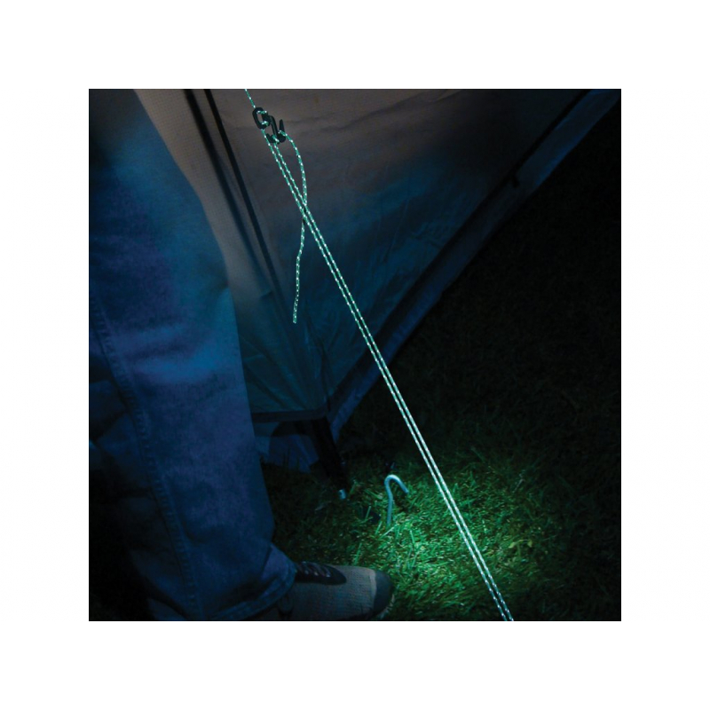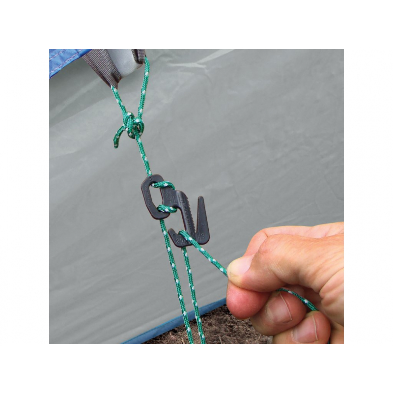 This FIGURE 9® TENT LINE KIT tent set is specially designed for anchoring and switching off tents. The green nylon cord is reflective, so it will not only help you find the right tent, but above all it will reduce the annoying burying of cords in the dark.