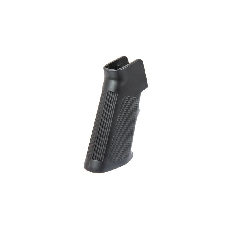 EPG M4 Pistol Grip by PTS Syndicate in black. Compatible with AEG, PTS ERG, Marui M4 NGRS and GBLS DAS systems. Ergonomic polymer grip for the AR15 (M4 / M16) platform. Reinforced construction with excellent handling, inspired by MAGPUL-style pistol grips. Aggressive anti-slip texture. Cover cap included.