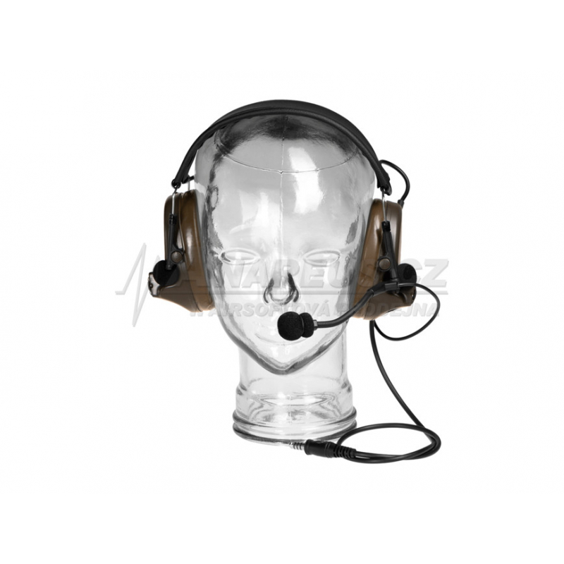 Comtac II tactical headset with automatic muting and amplification of ambient sounds. Less audible sounds (e.g. footsteps) are accentuated, giving you a better overview of what's happening on the battlefield. Conversely, sounds that are excessively loud are muffled by the headset to protect the speakers and your hearing. Thanks to the detachable microphone, you can communicate with your team quickly and easily. You can hear the sound of the radio on both sides, so you won't lose the ability to perceive your surroundings.