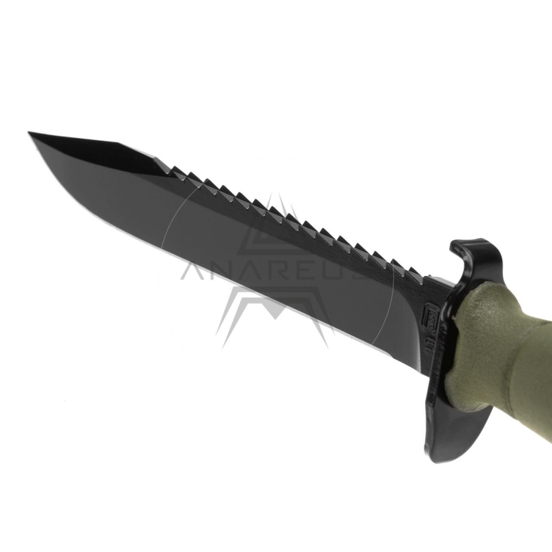 The Glock FM 81 is a classic army utility knife with a fixed blade that is designed for versatile use. The blade is made of quality steel hardened to 55 HRC with a matte black finish. The handle is ergonomic, made of smooth polymer.
