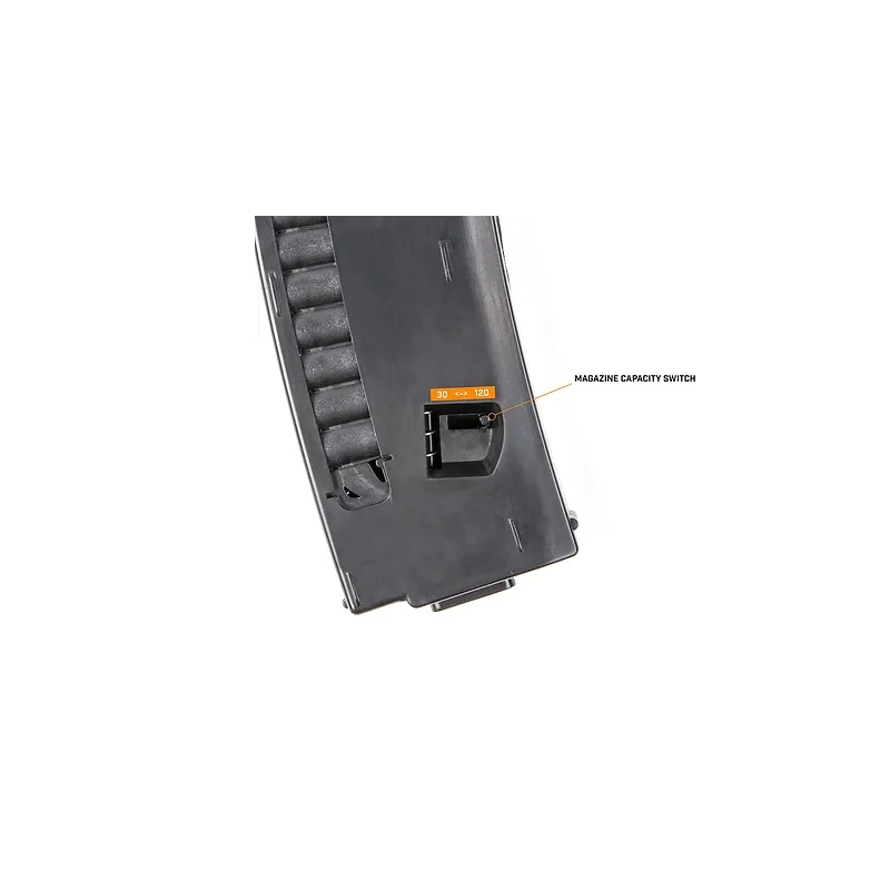 Constructed from extremely durable DuPont Zytel polymer, it withstands harsh battlefield conditions and is suitable for training. When the last BB is fired, an orange follower pops up, signaling an empty magazine, which is visible through the open ejection port window, just like real firearms. The high-quality feeding spring and follower ensure smooth operation even at extreme rates of fire or in DMR rifles with heavy BBs up to 0.49g, without jamming or slow feeding.