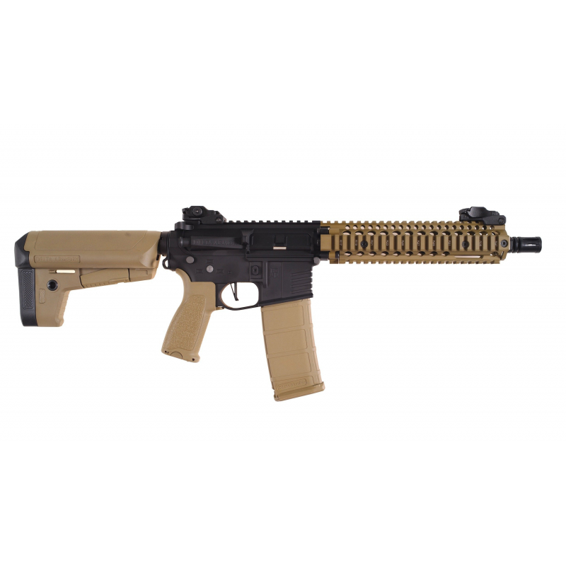 Featuring a CNC RIS handguard MK18, SF stock with extra space for larger batteries, and a QD grip V2.