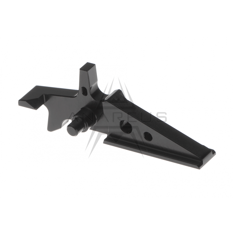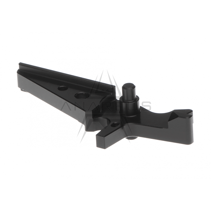 CNC trigger made of very strong aluminum EN AW 2007. It is designed for airsoft guns of M4 type and its clones. Trigger's response is very quick. Overall speed up is approximately 70%. Trigger's surface is decoratively anodized.
