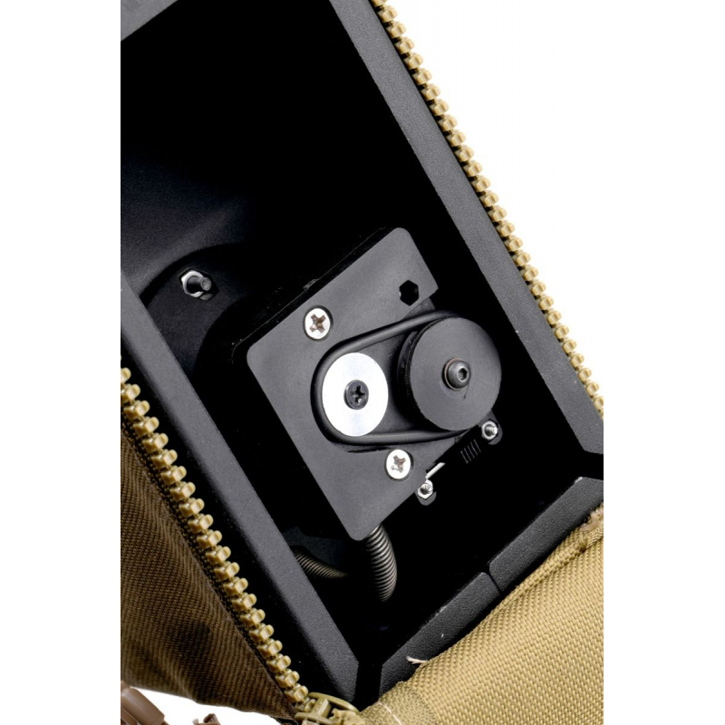 Inside this heavy-hitting replica lies an equally rugged M249 gearbox (brick-type like A&K / CA), fitted with steel gears, CNC nozzle, CNC piston head, a German-made piano spring, and a QSC aluminum spring guide. Ammunition is fed by an electric box magazine holding 5000 BBs, which activates automatically when the trigger is pulled. Its main advantage is direct bottom-feed into the hop-up chamber, eliminating the feed issues common to M249 or M60 platforms. While the chamber shape matches M249, the BB feed port is in a different position, meaning standard M249 hop-up upgrades won’t fit. However, the chamber is fully CNC-machined metal, with enough pressure for heavier BBs and a nubber arm compatible with Omega-type nubs. Recommended battery is 7.4V Li-Pol as there is no MOSFET in the trigger assembly. Wiring leads to the handguard, where a nunchuck or stick-type battery fits around the quick-change outer barrel.