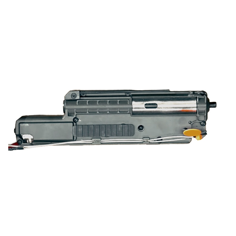 The electric magazine holds up to 2000 BBs, making it ideal for providing sustained suppressive fire. The 5.56 imitation ammo belt adds to the weapon's realism. The improved sound-controlled feeding system ensures accurate BB feeding, with the microphone placed to better respond to the firing sound. The base of the magazine houses a compartment for a 9V battery (not included).