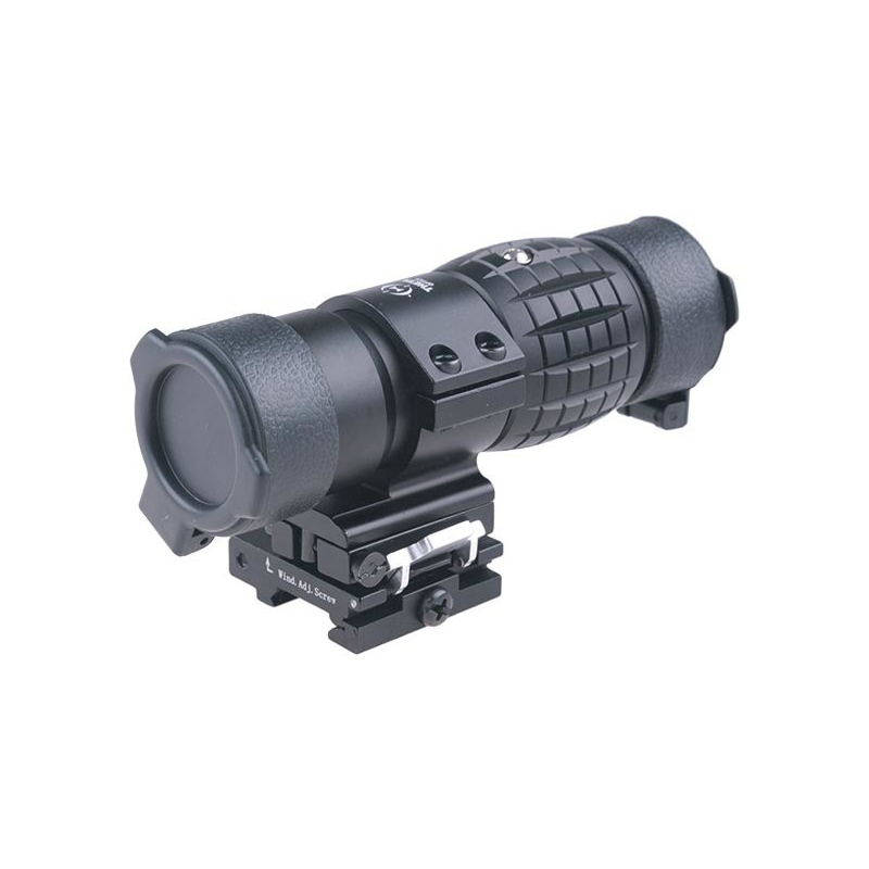 Theta Optics equipment is a guarantee of high quality for a reasonable price. Closed in a durable metal housing transparent magnifier (magnifying adapter) for scopes. The product is mounting on a standard 22mm RIS rail.
