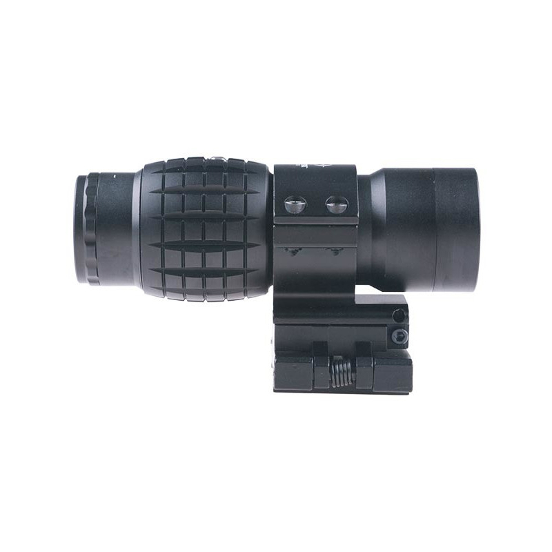 "Magnifier" has a montage with a hinge, which allows you to deviate it aside when it's not using. Same magnifier for montage on RIS rail is installed on the stable QD latch.