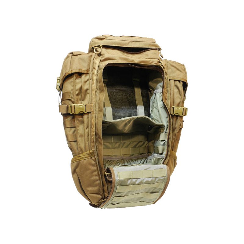 A radio rack with large antenna portals is fitted to the back wall of the upper chamber. The pack features a robust internal aluminum and plastic frame, is comfortably padded with our deep-cut airmesh foam, and is well ventilated.